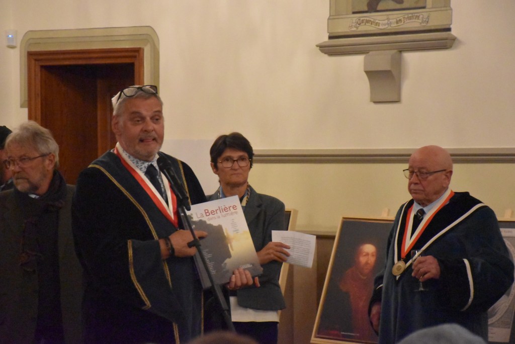 Une conférence sur et autour de la Berlière (avec, en exergue, un focus sur les familles de Liedekerke, d’Ennetières, Basta, …) fut donnée magistralement par le Bailli Titulaire Francis, en l’église St Barthélémy le 25 septembre. Conférence précédée par une mise en bouche autour de Ferdinand de Liedekerke sous forme de saynète interprétée brillamment par la Société des Guides de Mouscron. Et suivie du verre de l’amitié offert en l’Hôtel de Ville par la Ville de Mouscron. Ce fut l’occasion de dévoiler un tableau représentant les propriétaire devant leur château… Seul tableau existant du château et appartenant à la Ville de Mouscron…