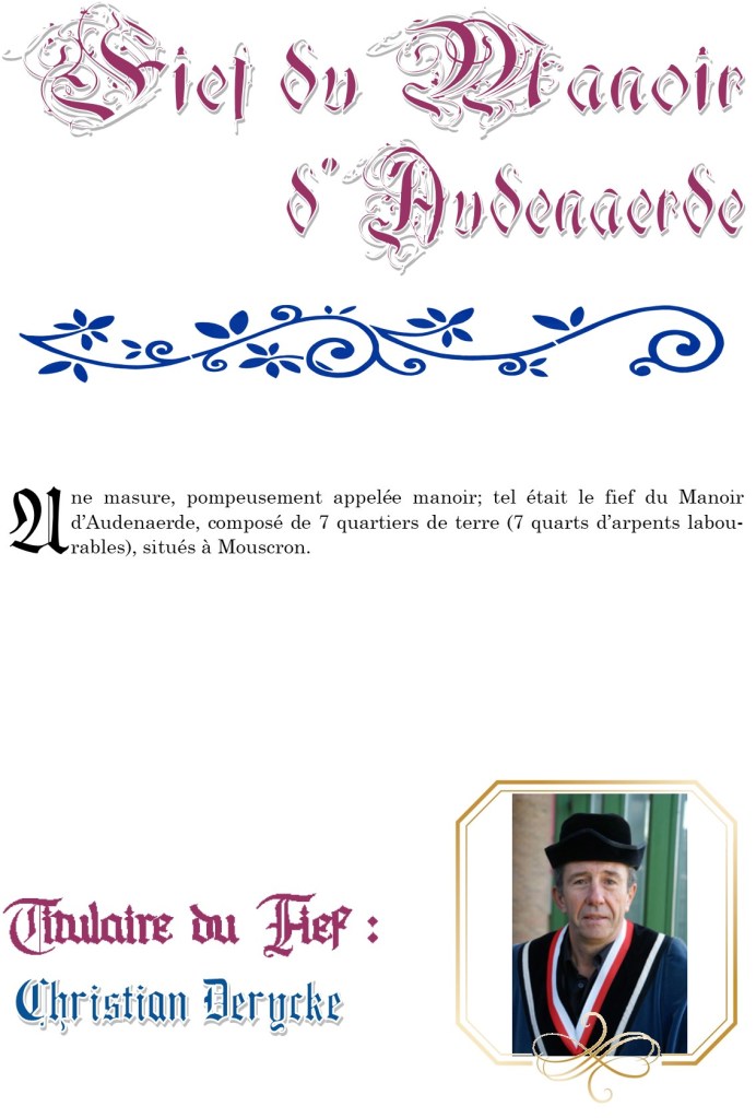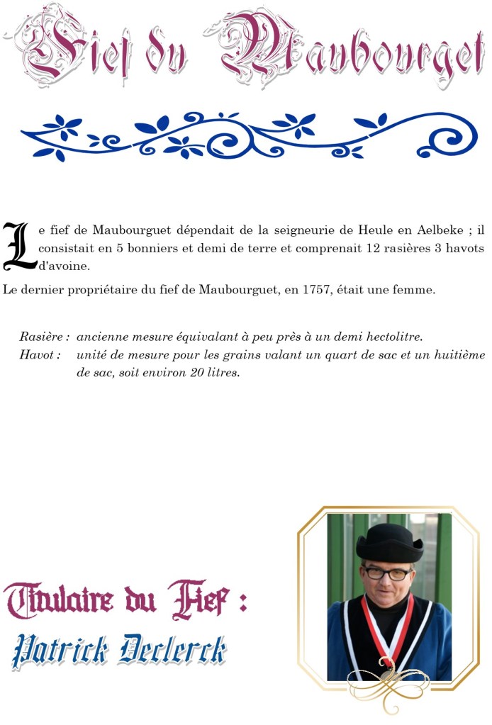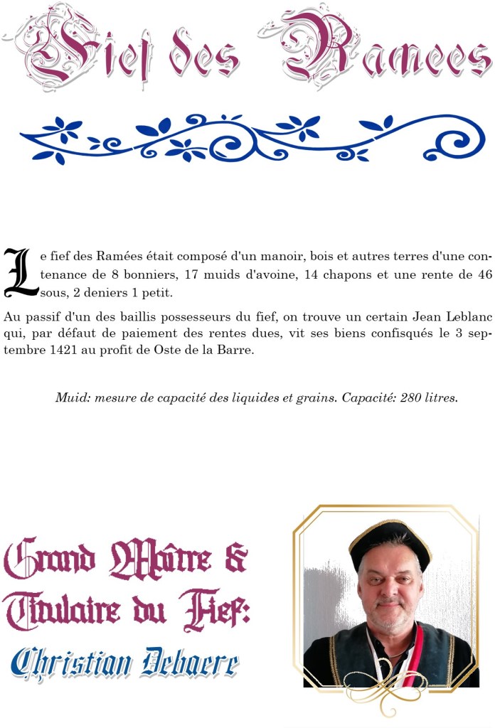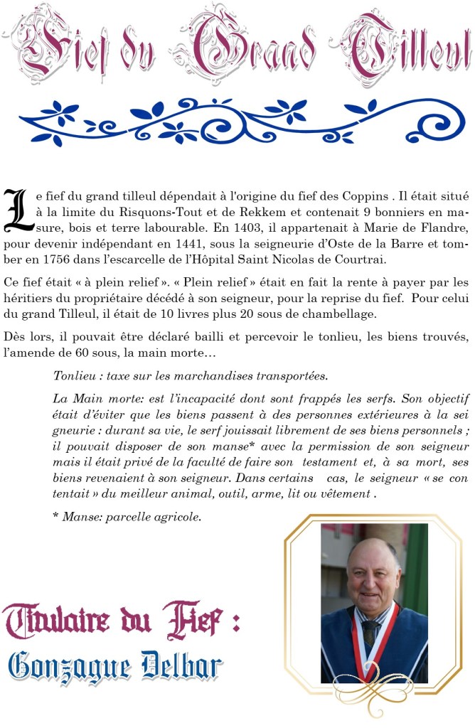Fiefs des Baillis Titulaires À chaque intronisation, un Bailli titulaire se voit attribuer, de manière fictive bien sûr, un fief. Quels sont ces fiefs?